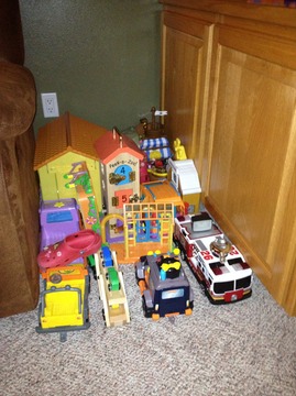 large character/aciton figure toys, organized games for two or more players in cabinet