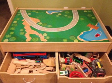 train table with plenty of brio track and tons of Thomas trains and large Thomas items (water tower, coal station)