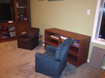 shelves will have Montessori materials, including problem solving and sensory items (will update this picture when items are delivered) Recliners for relaxing and reading books